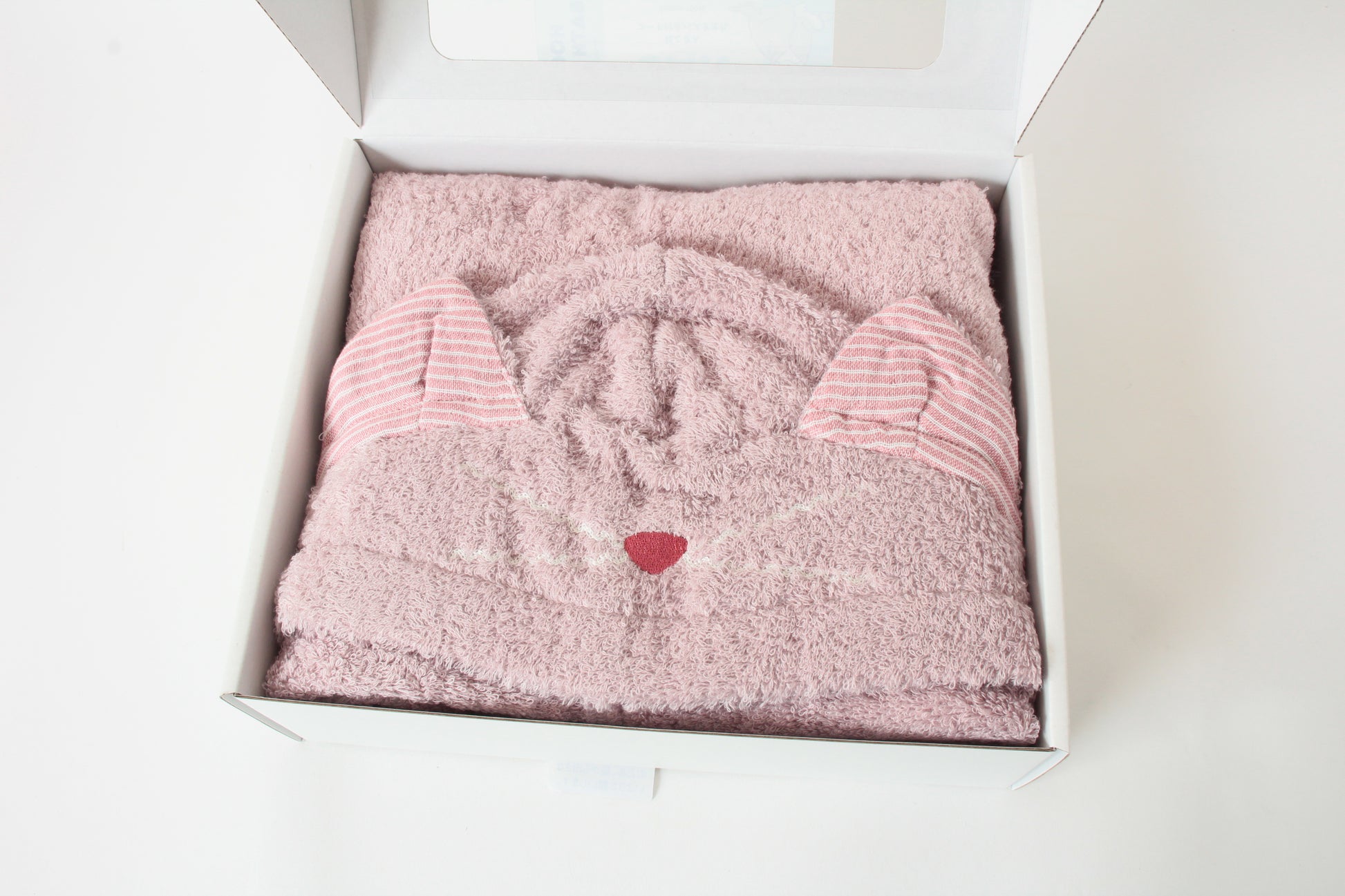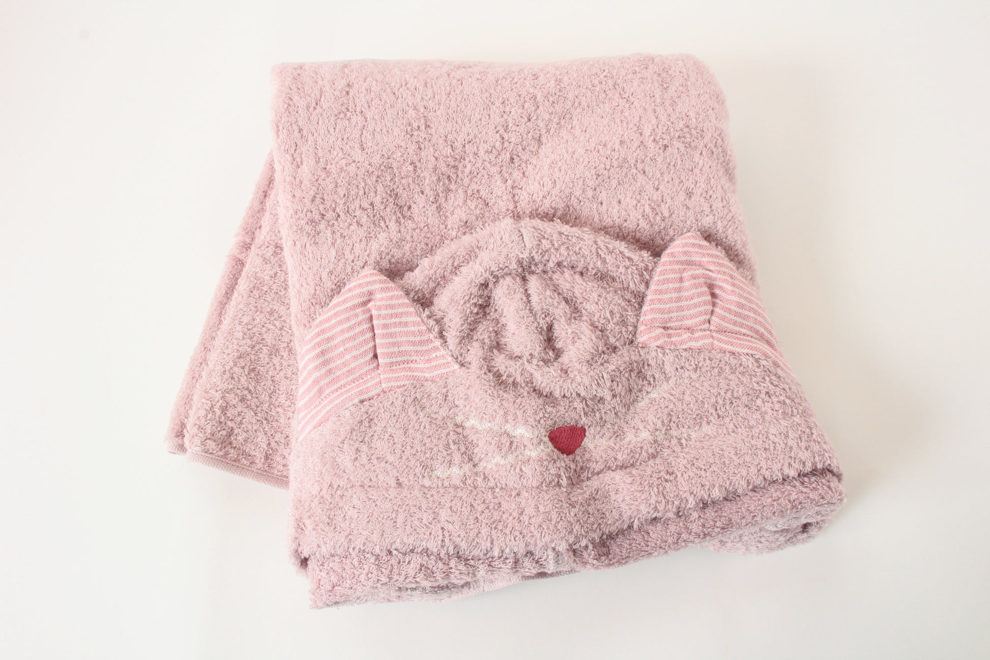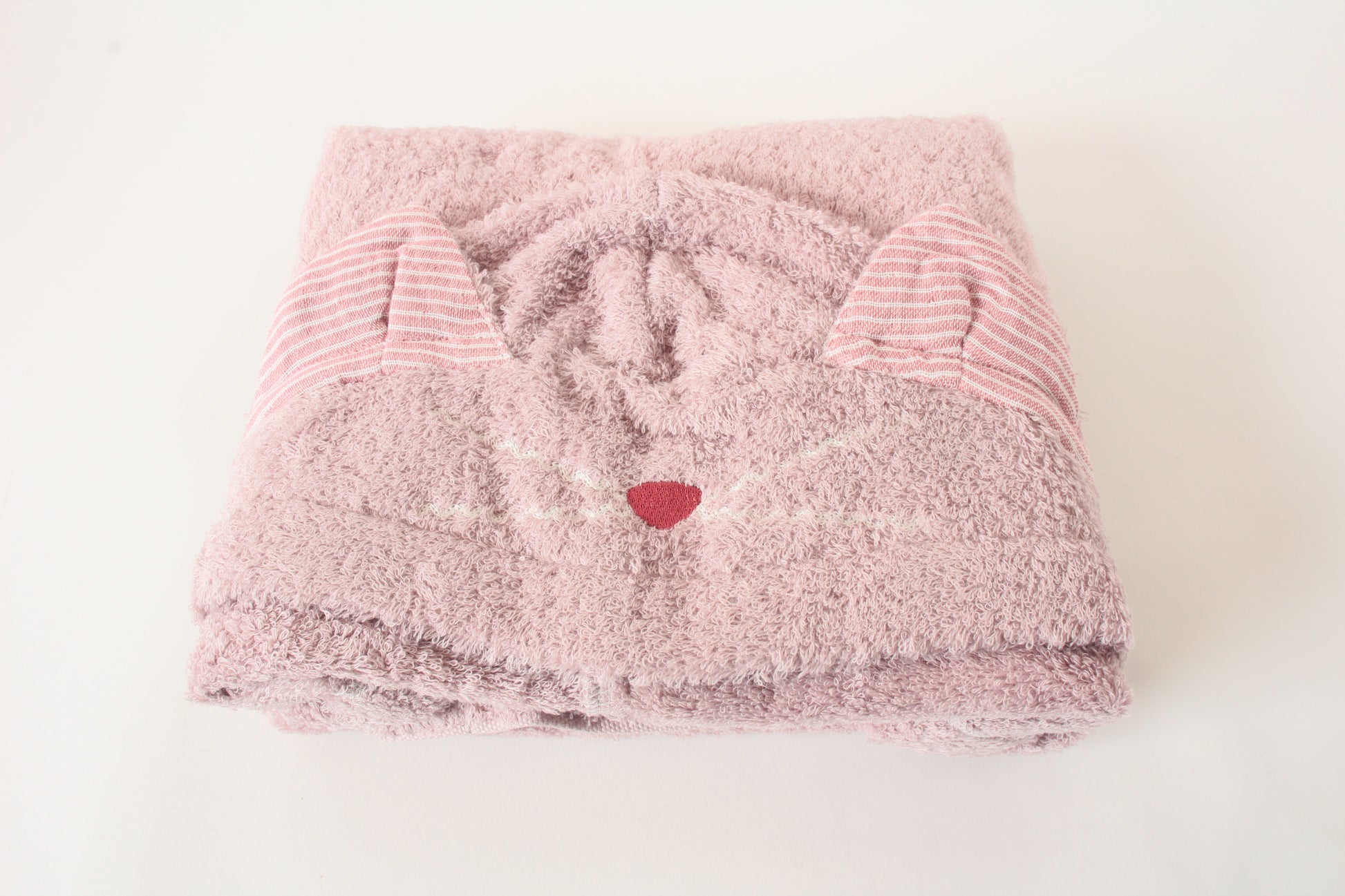 Cat Hooded Bath Towel (Pink) 100% cotton made in Japan