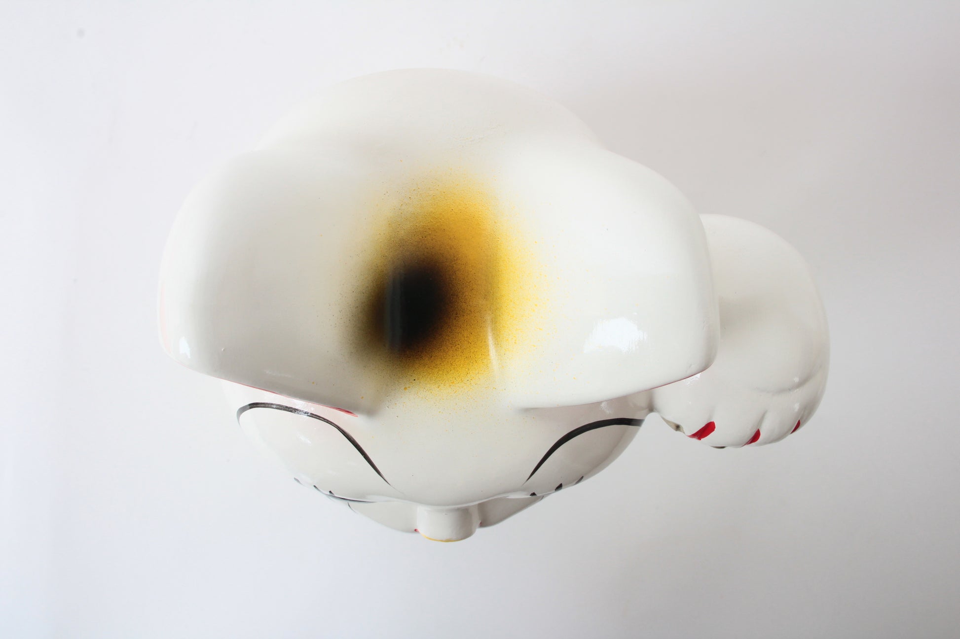 Seto ware Ceramics Manekineko Statue Beckoning Cat White with left paw raised holding Gold Koban Koin 9.6in made in Japan
