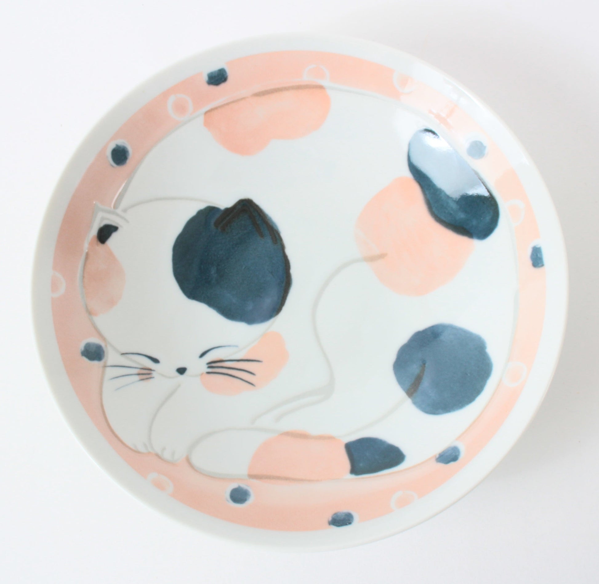 Mino ware Japanese Ceramics Large Round Plate Sleeping Cats Apricot Pink Made in Japan