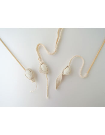 This dental rope toy is made from natural silkworm cocoons and infused with Catnip (Matatabi). Its unique texture encourages chewing, helping to support your cat’s dental health while providing playful fun. Handmade in Japan with care.