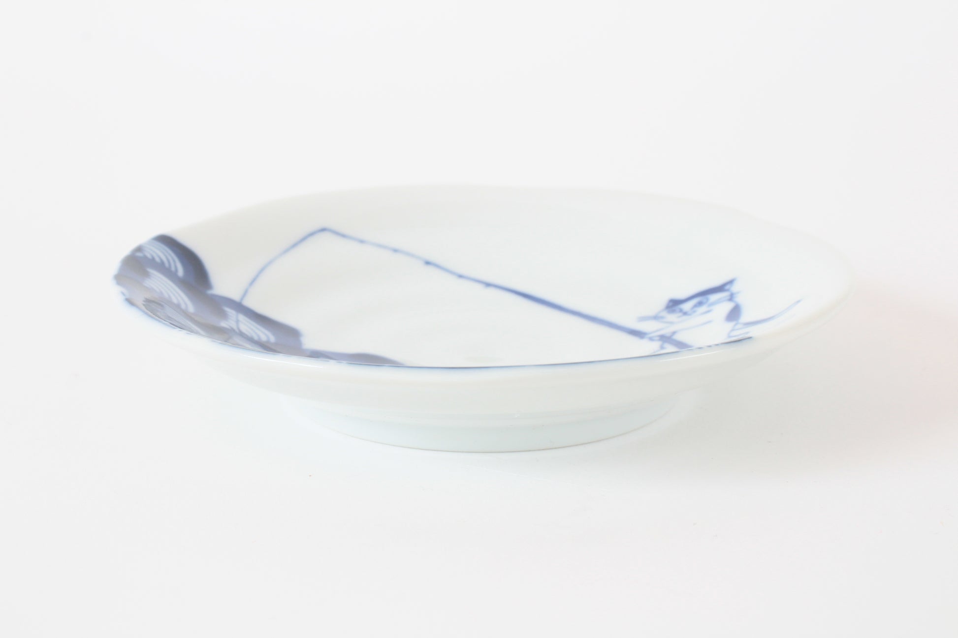 【2pcs set】Mino ware Japanese Ceramics Pair Round Plate 5.4in Japanese Cat Fishing Seigaiha pattern (set of two) made in Japan (Small Flat)