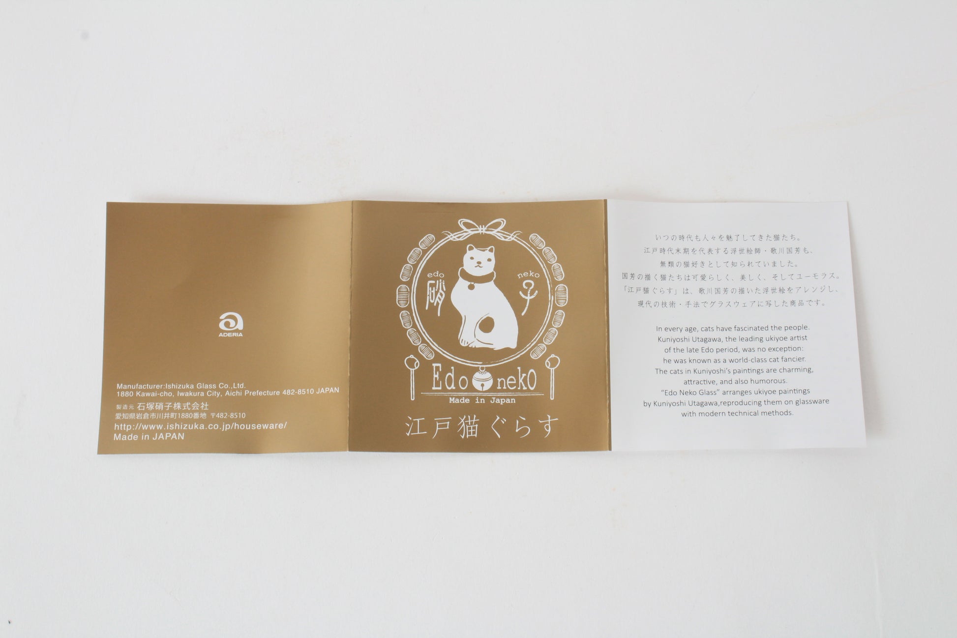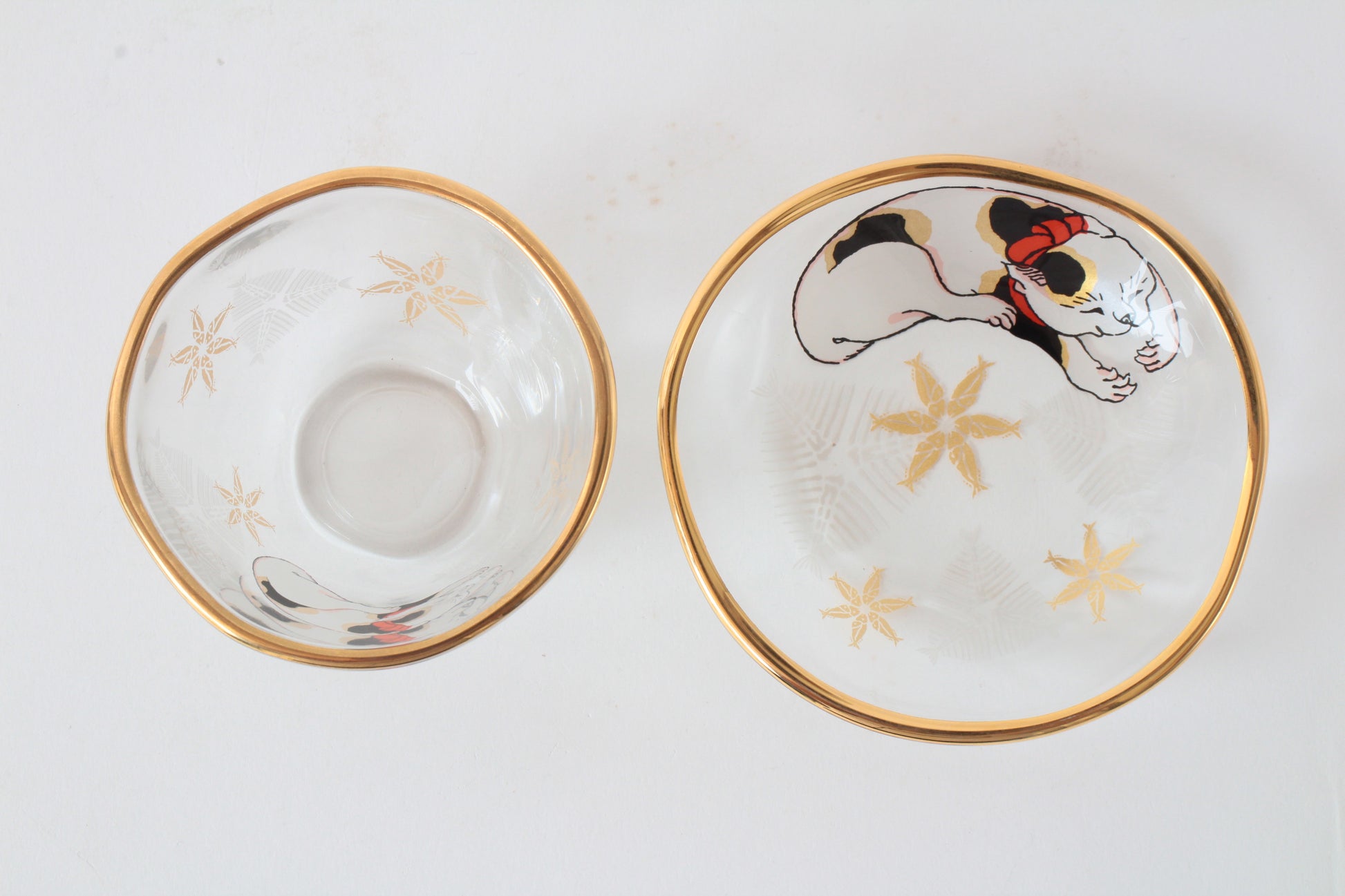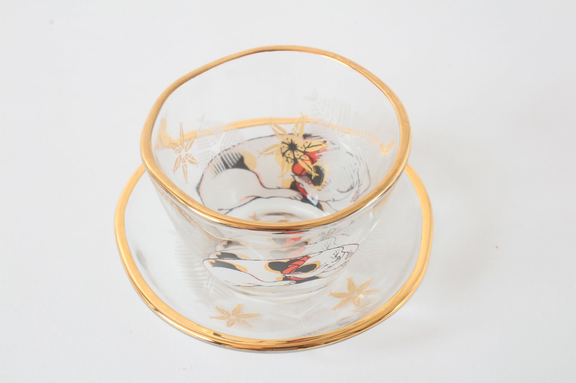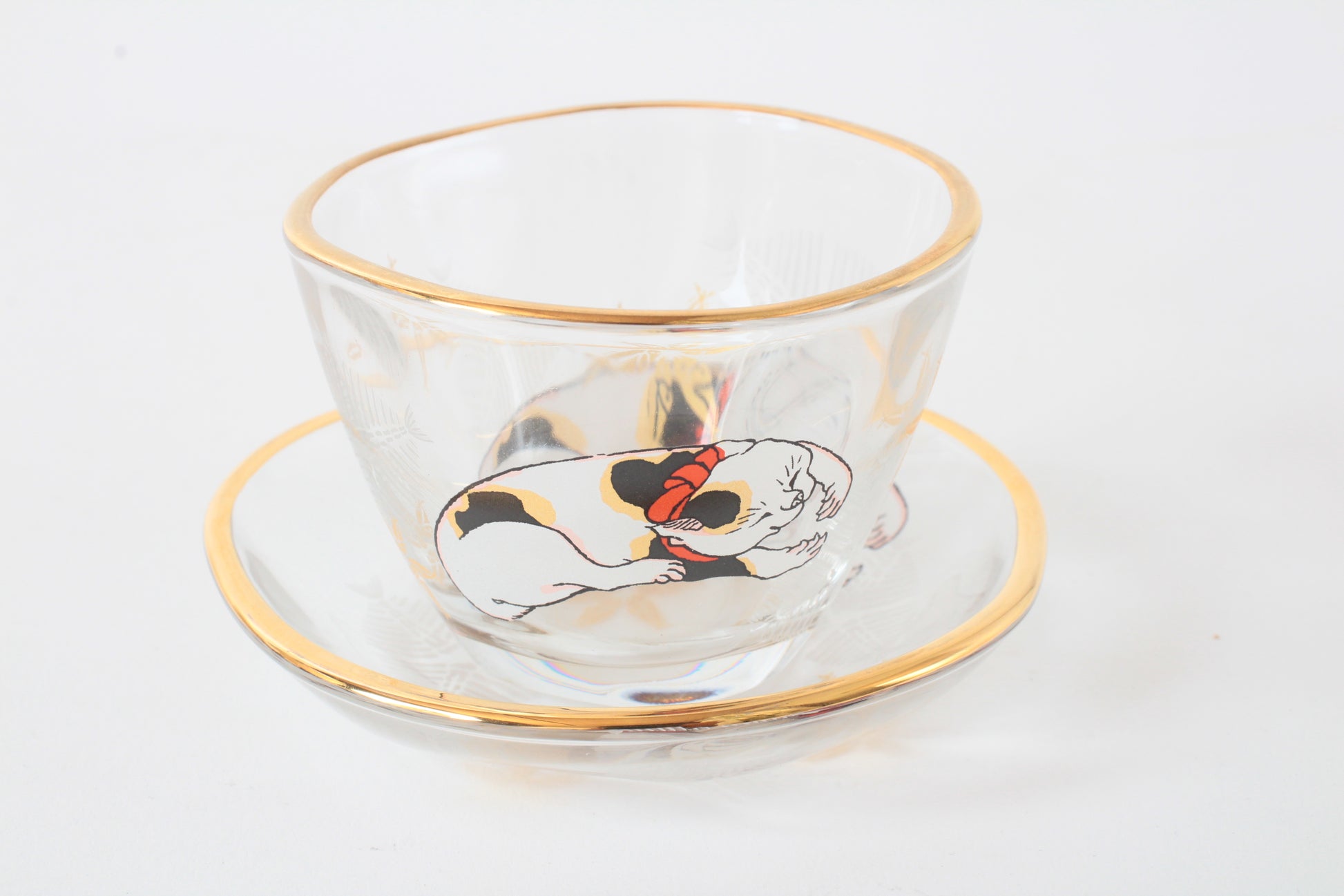 Japanese Sake Glass & Saucer Set Edo Neko Japanese Ukiyo-e Cat Printed Gold Edge with Wooden Box made in Japan