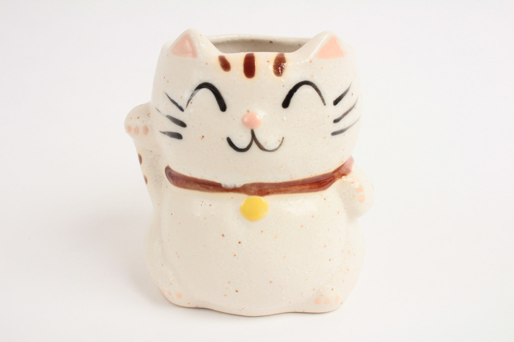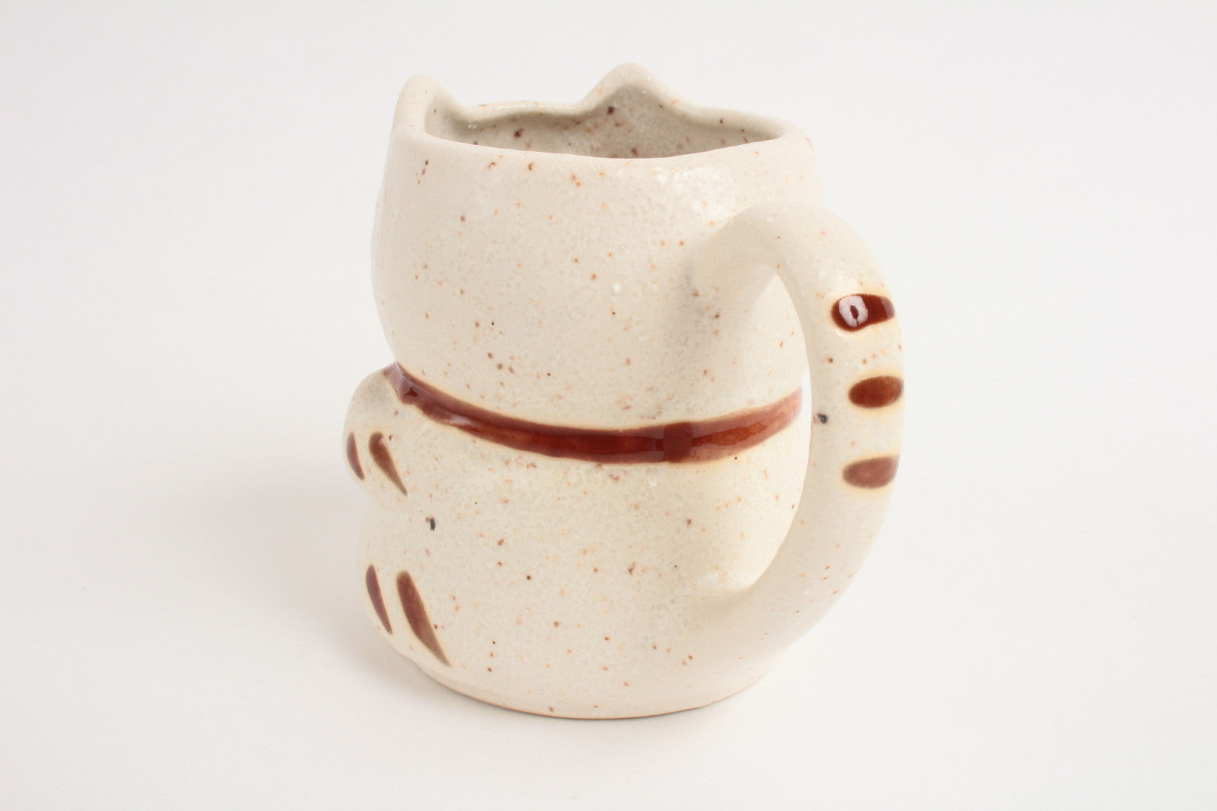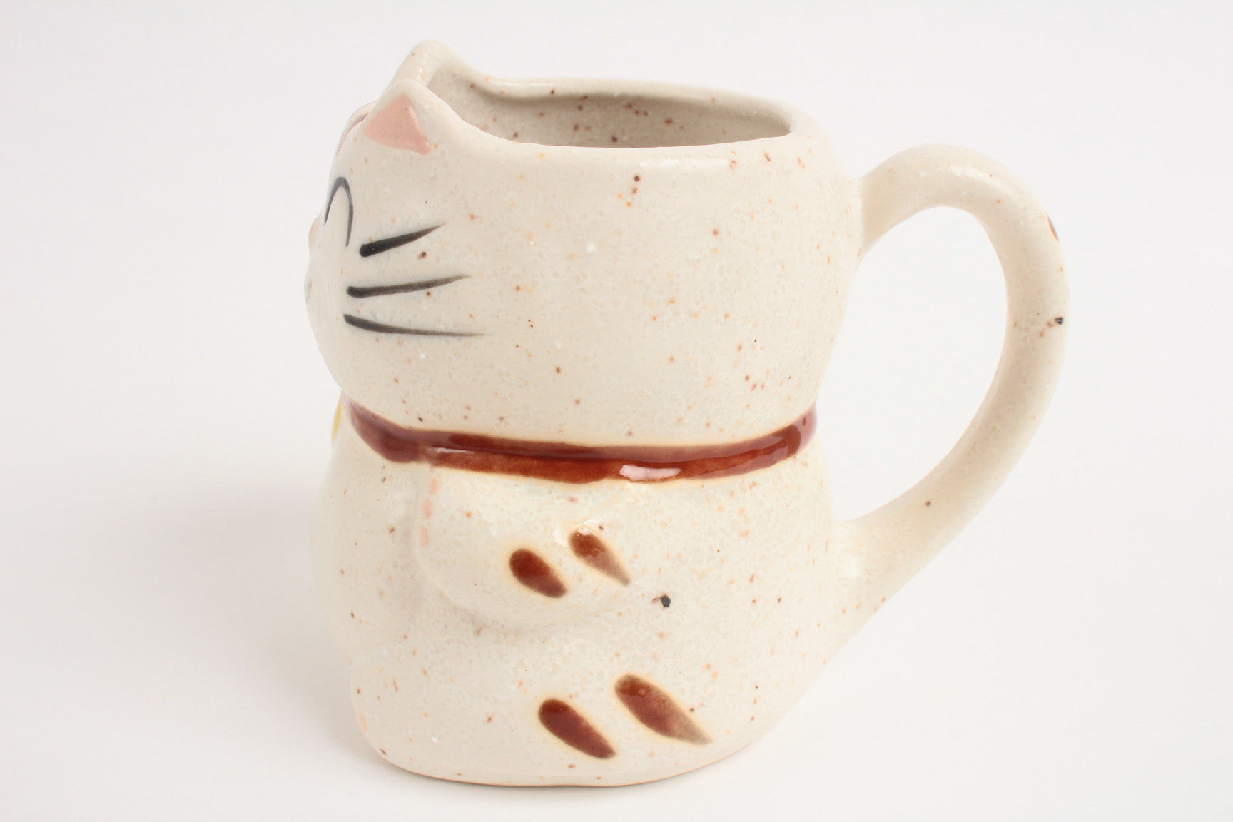 Mino ware Japanese Pottery Mug Cup Manekineko Cat Chiffon White made in Japan