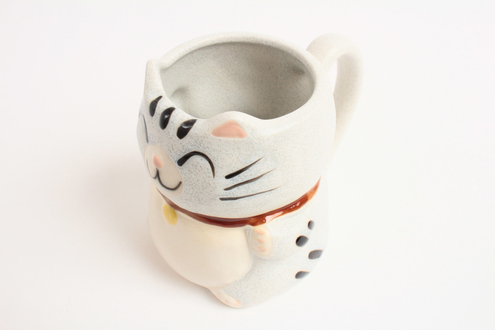 Mino ware Japanese Pottery Mug Cup Manekineko Cat Baby Blue made in Japan