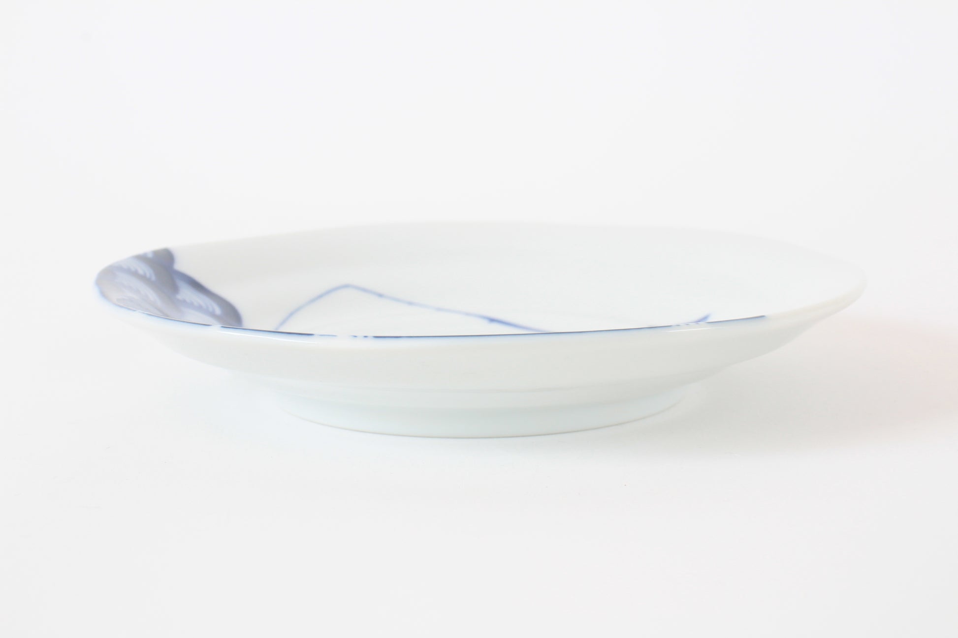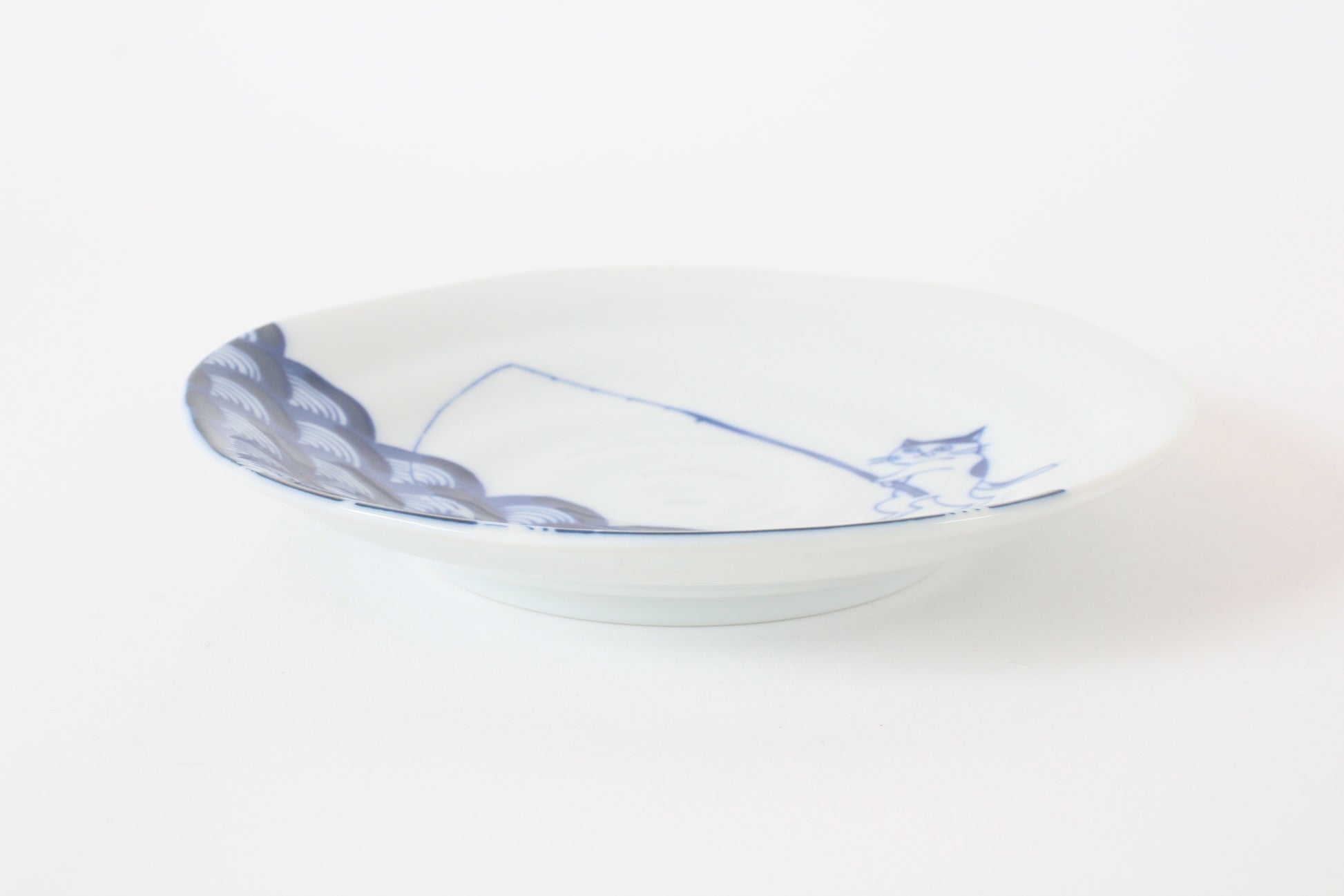【2pcs set】Mino ware Japanese Ceramics Pair Round Plate 6.5in Japanese Cat Fishing Seigaiha pattern (set of two) made in Japan (Large Flat)