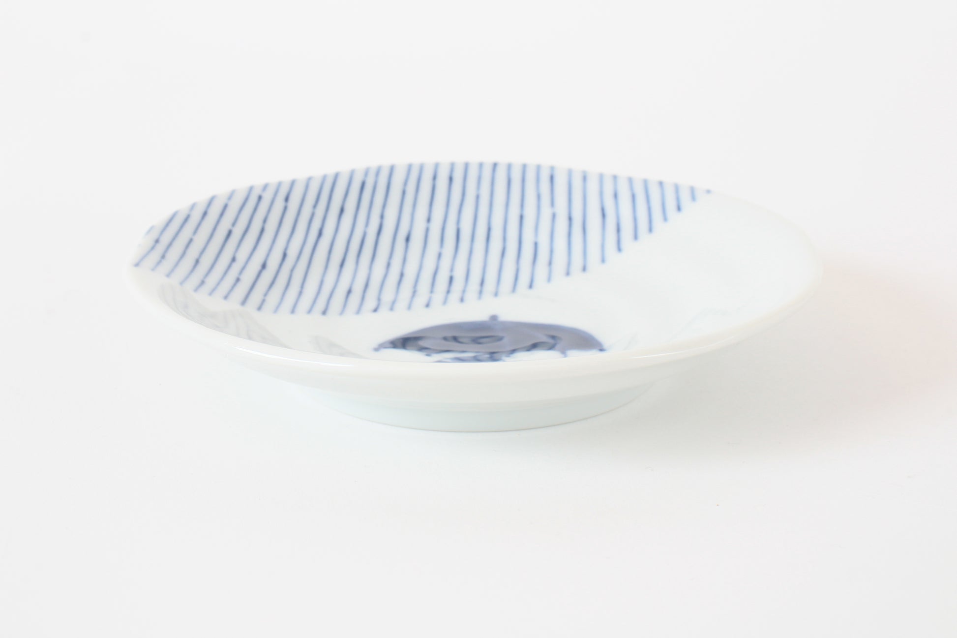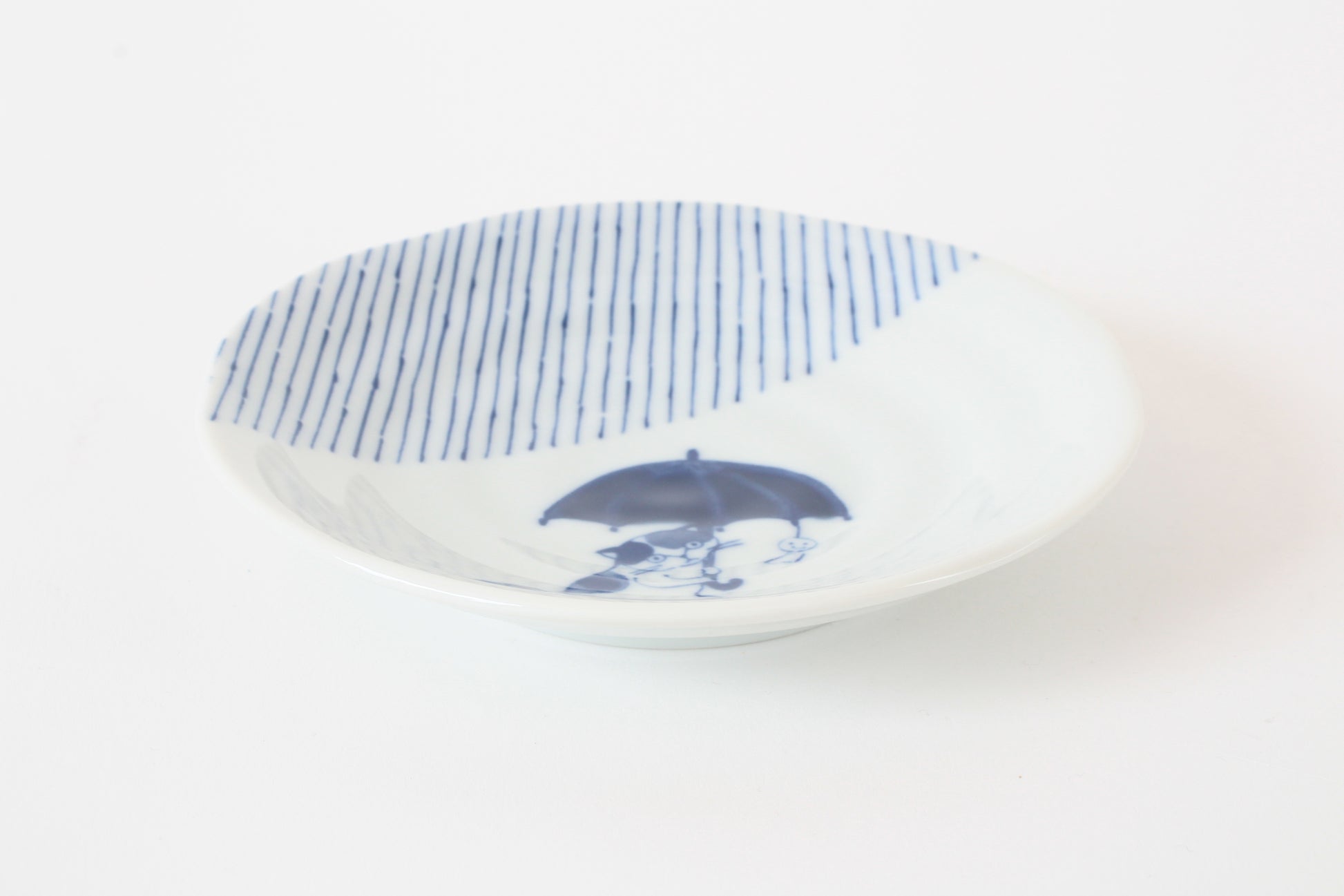 【2pcs set】Mino ware Japanese Ceramics Pair Round Plate 5.4in Japanese Cat with umbrella Tokusa pattern (set of two) made in Japan (Small Flat)